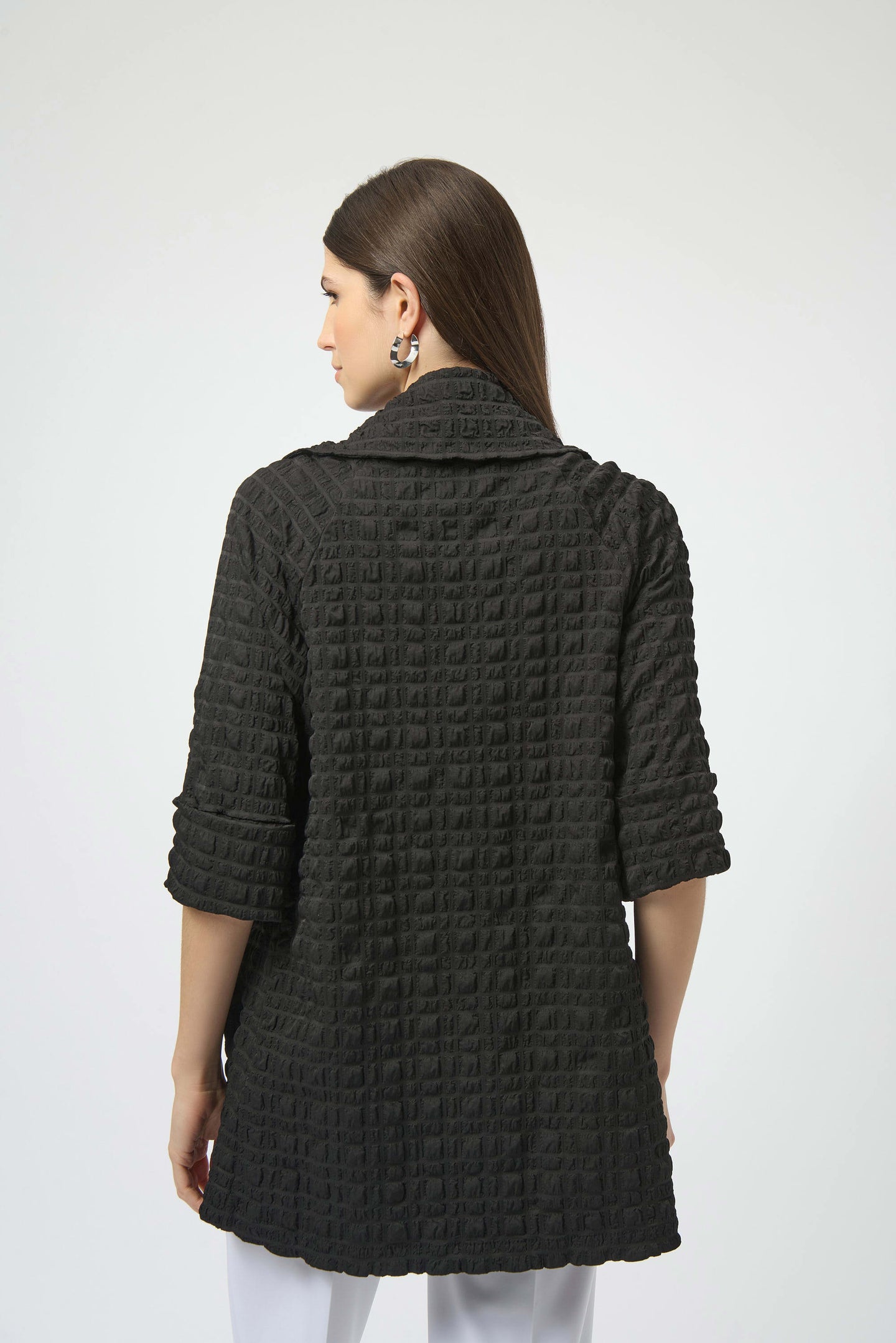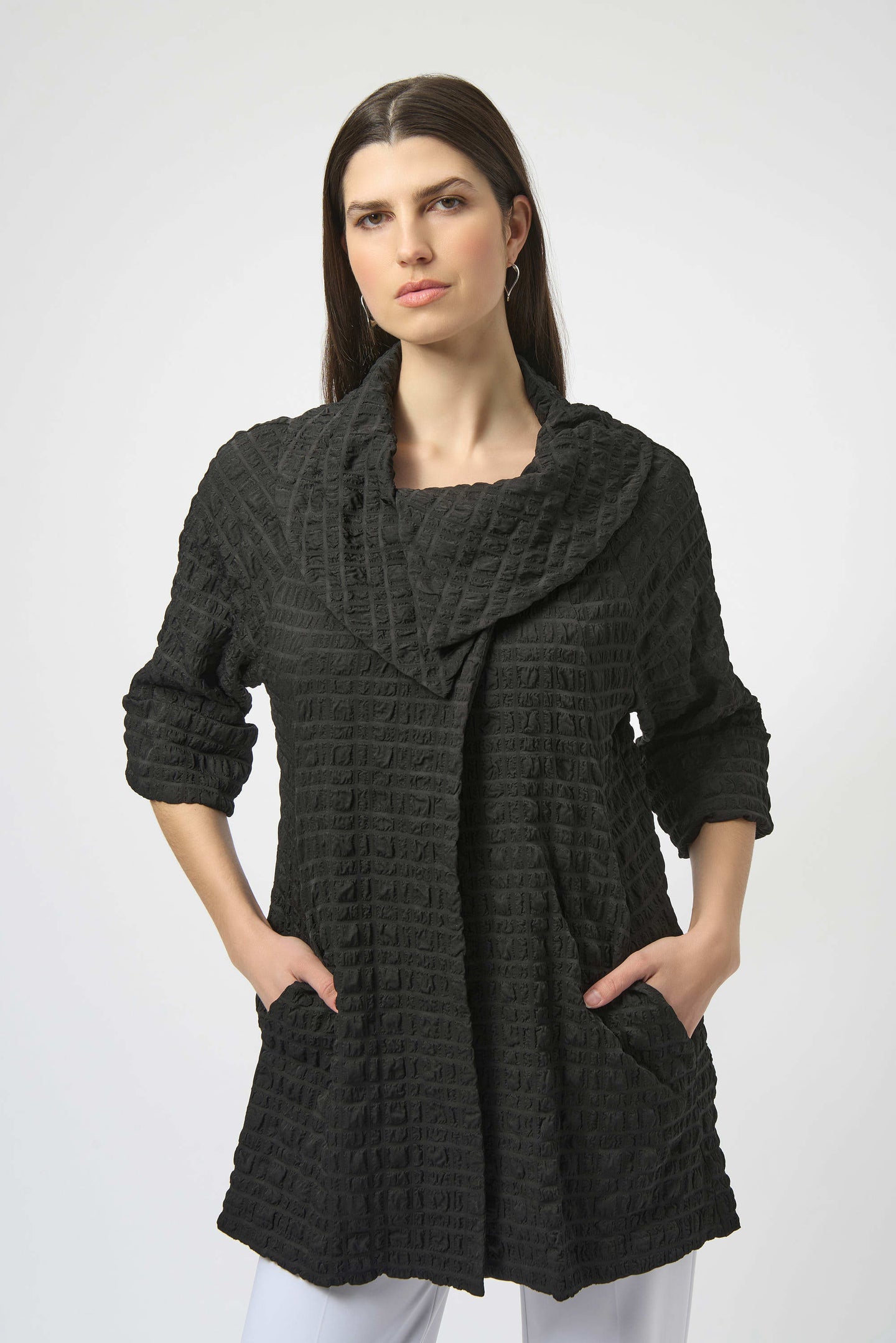 Introducing the Frank Lyman Coat for Spring 2025, Style 251234, designed to elevate your outerwear collection with its modern texture and relaxed elegance. Made in Canada, this coat is crafted from 96% Polyester and 4% Spandex, offering a lightweight feel with just the right amount of stretch. The rich, textured fabric adds depth to its silhouette, while the oversized collar and ¾ sleeves lend a contemporary, effortless charm. Perfect for layering over your favorite outfits, this coat provides both style and comfort for the transitional season.