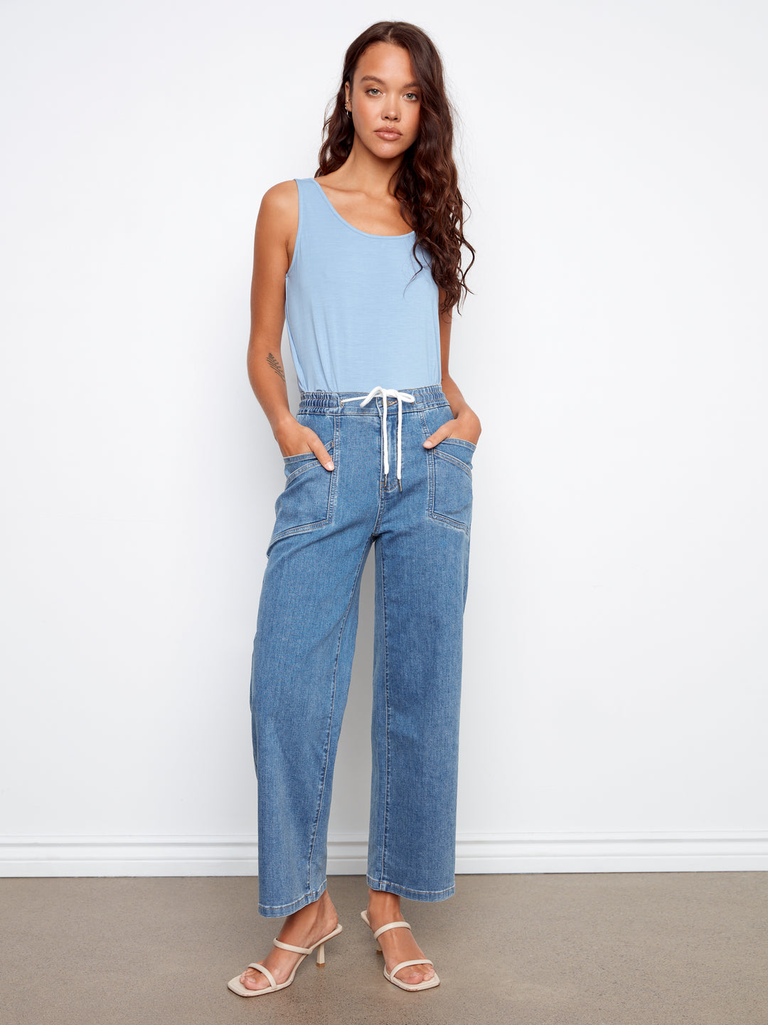 Drawstring Wide Leg Denim Pants