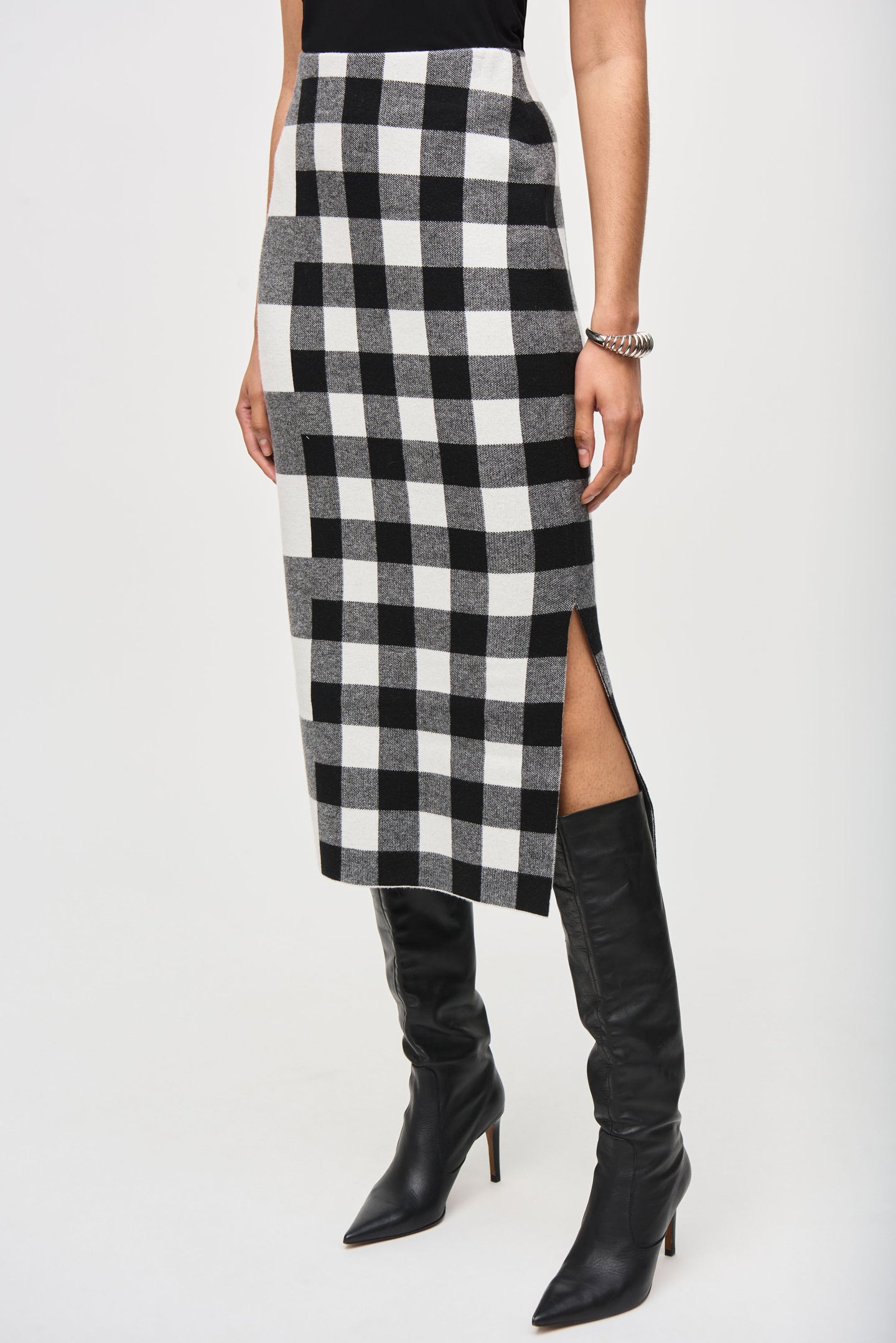 Looking for a skirt that transitions effortlessly from work to weekend? Look no further than the Joseph Ribkoff Plaid Pencil Skirt (Style 243947). This versatile piece is the perfect blend of polished elegance and playful charm, making it a must-have for any modern wardrobe.