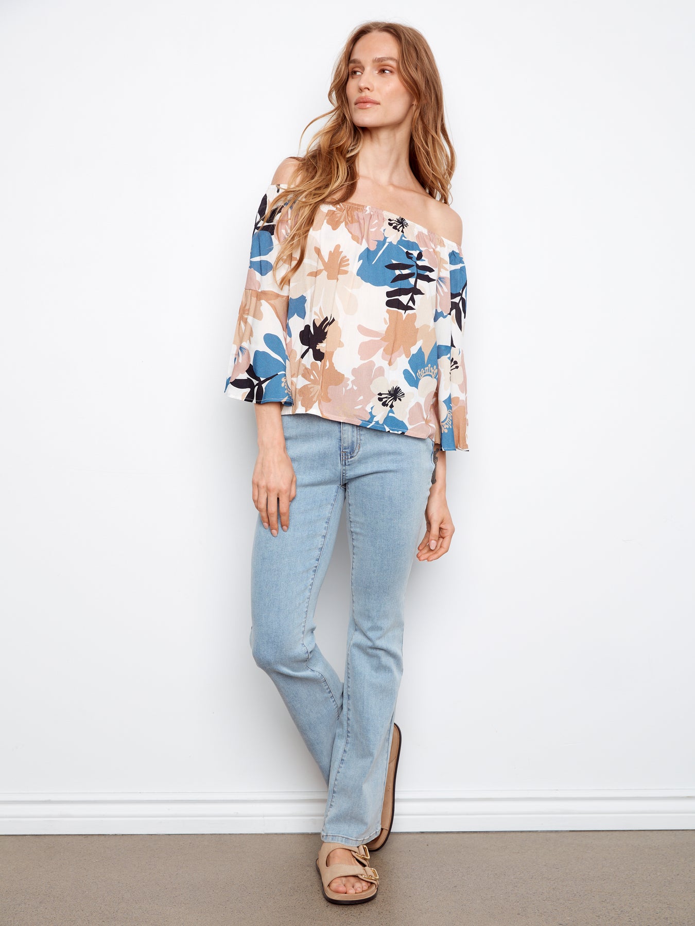 Printed 3/4 Sleeve Off Shoulder Blouse