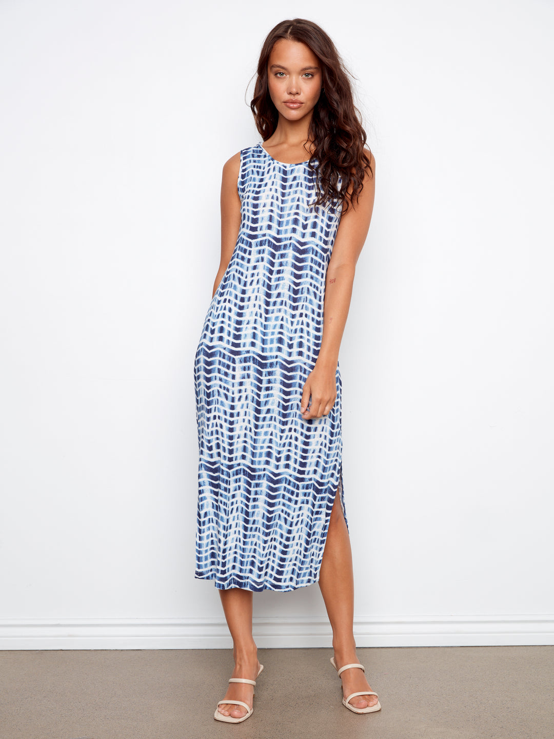 Printed Sleeveless Scoop Neck Long Knit Dress