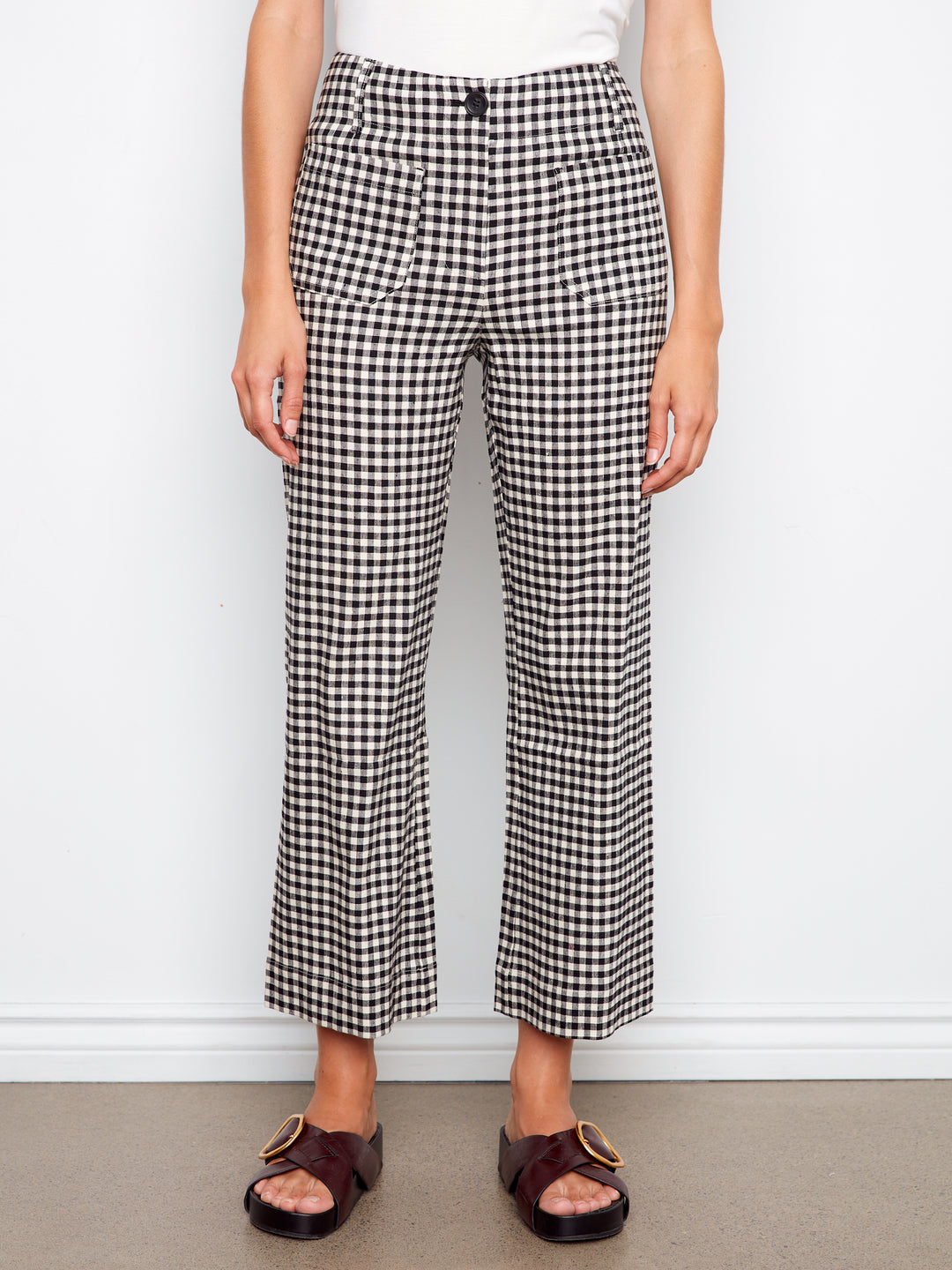 Gingham Wide Leg Pant With Patch Pockets