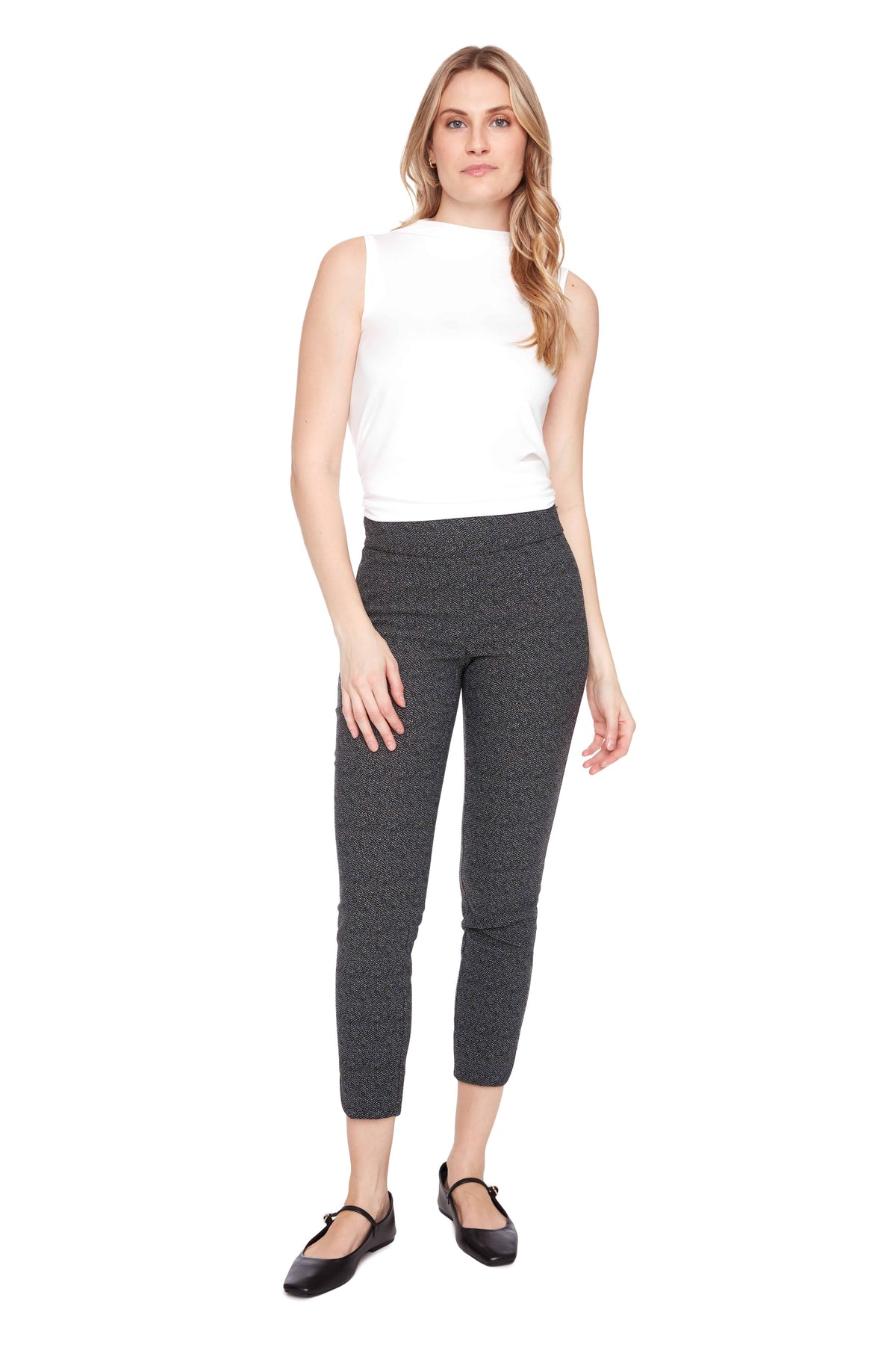 Sophisticated with a dash of swank, this upscale piece exudes a refined elegance and a touch of understated glam. The micro print boasts a classic houndstooth motif with subtle menswear-inspired vibes, jazzed up with a hint of sheen and a flirty cut for an instant dose of feminine polish with a chic corporate-to-cocktails versatility.