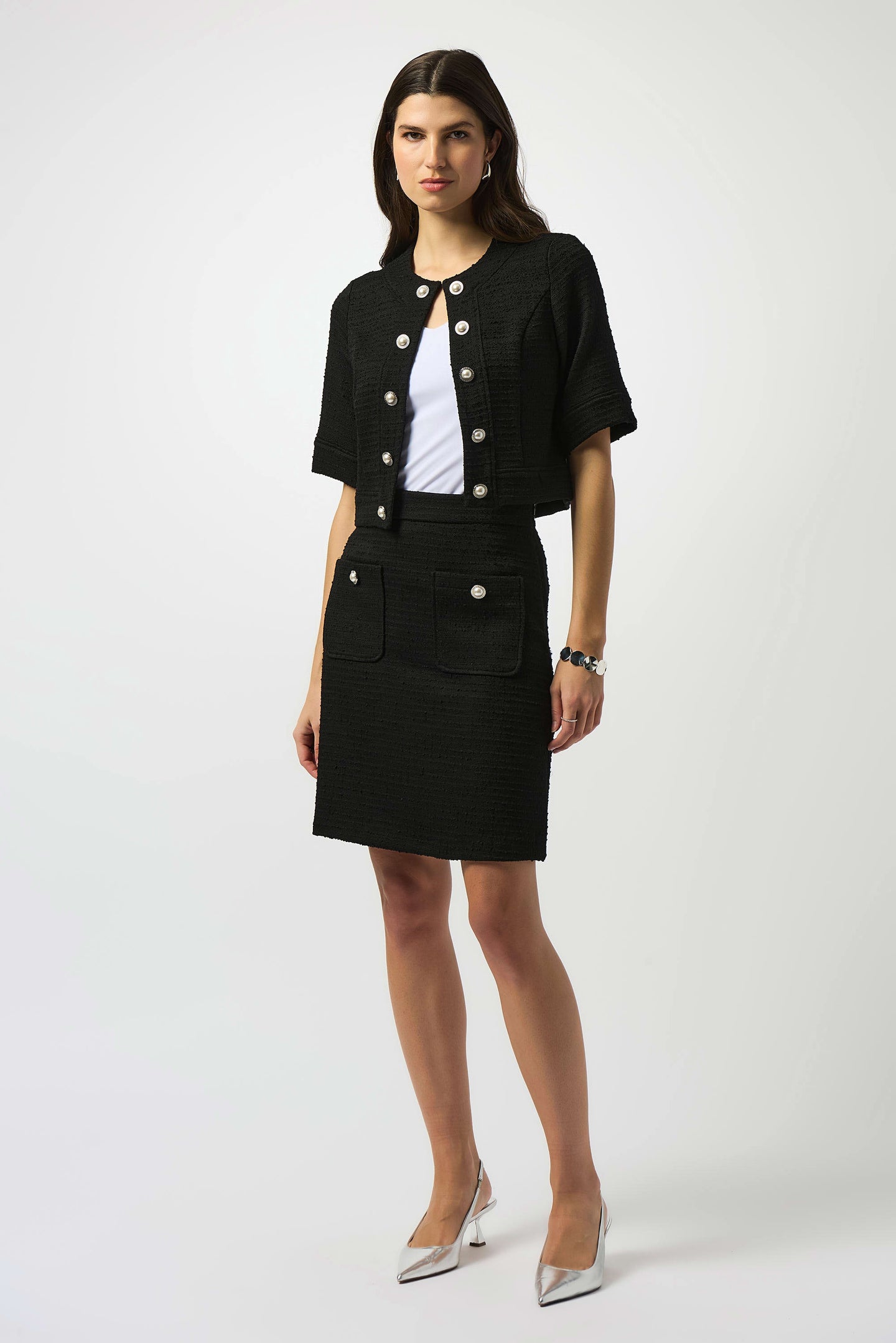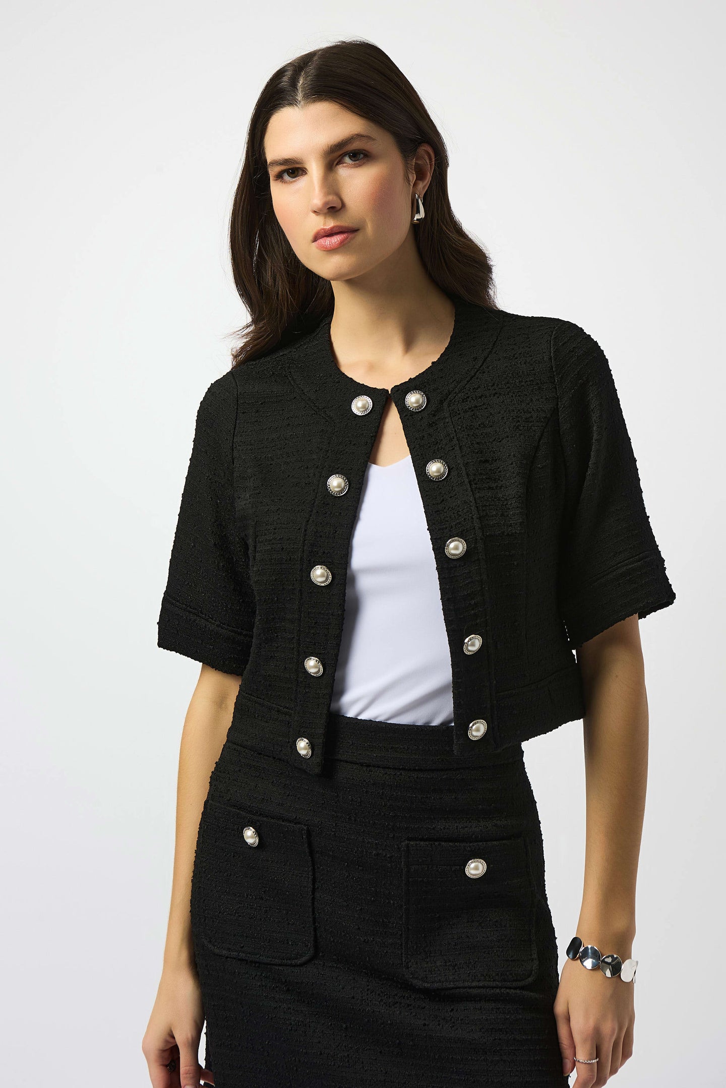 Discover the Joseph Ribkoff Jacket 251196 from the Spring 2025 collection, now available in multiple stunning colors. Perfect for adding a splash of elegance to any outfit.
