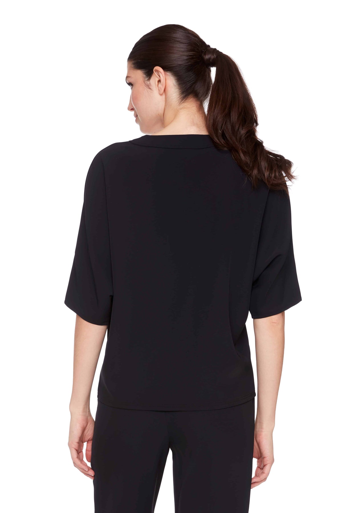 The classic V-neck gets an elegant upgrade with a relaxed silhouette and a sumptuous vegan silk fabric. The vibe is luxe and languid, punctuated with extra wide banding at the neckline for a subtle sporty-chic edge. On-trend and highly versatile, it adds a sophisticated allure to any ensemble.