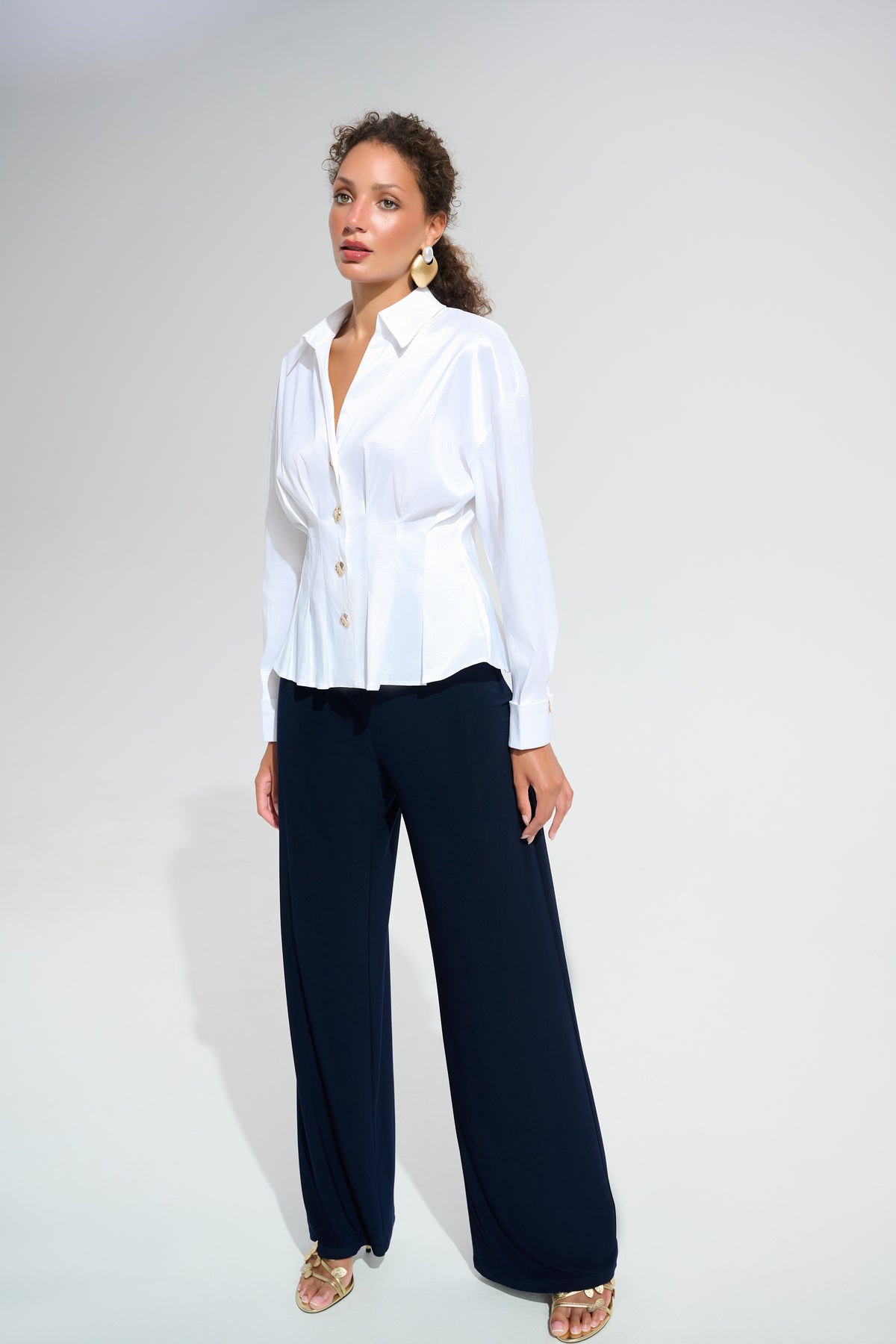 The Joseph Ribkoff label was created in 1957, winning an award its first year in business. The Canadian company opens a new office in Montreal 20 years later. In 1992 the European market launches and in 2019 the opening of the European manufacturing and distribution hub takes place. The year after Joseph Ribkoff introduces the eco-responsible denim collections.