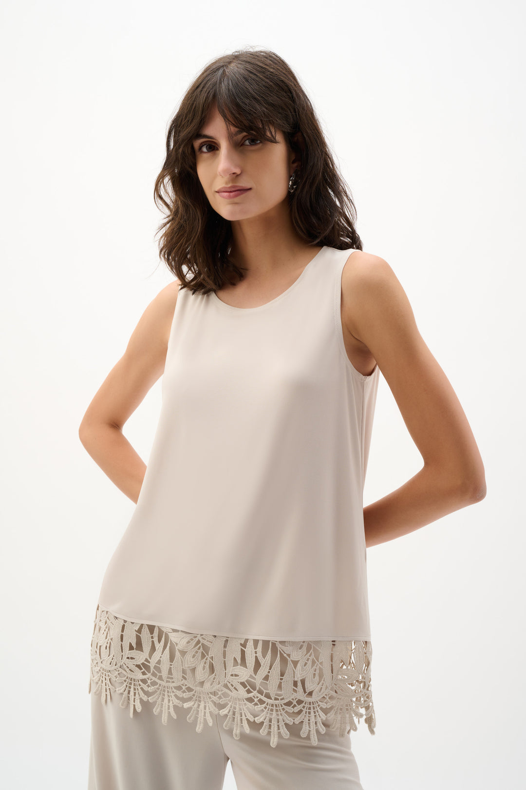 Silky Knit Sleeveless Top With Guipure Lace Hem 262094