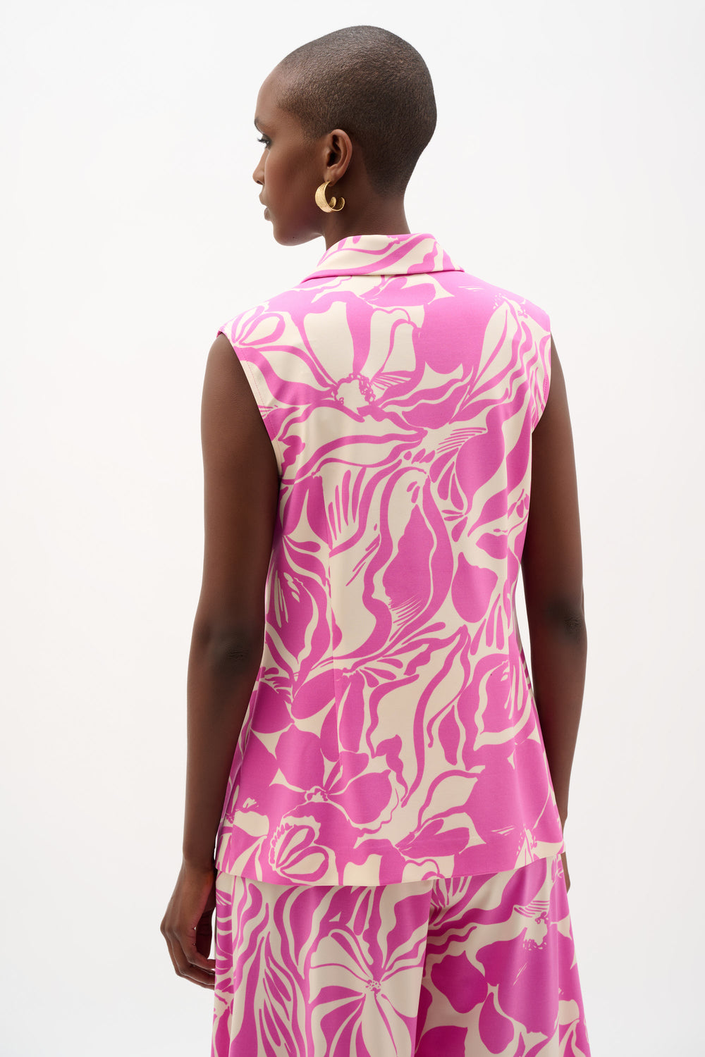 Satin Tropical Print Top With Butterfly Sleeves 262087