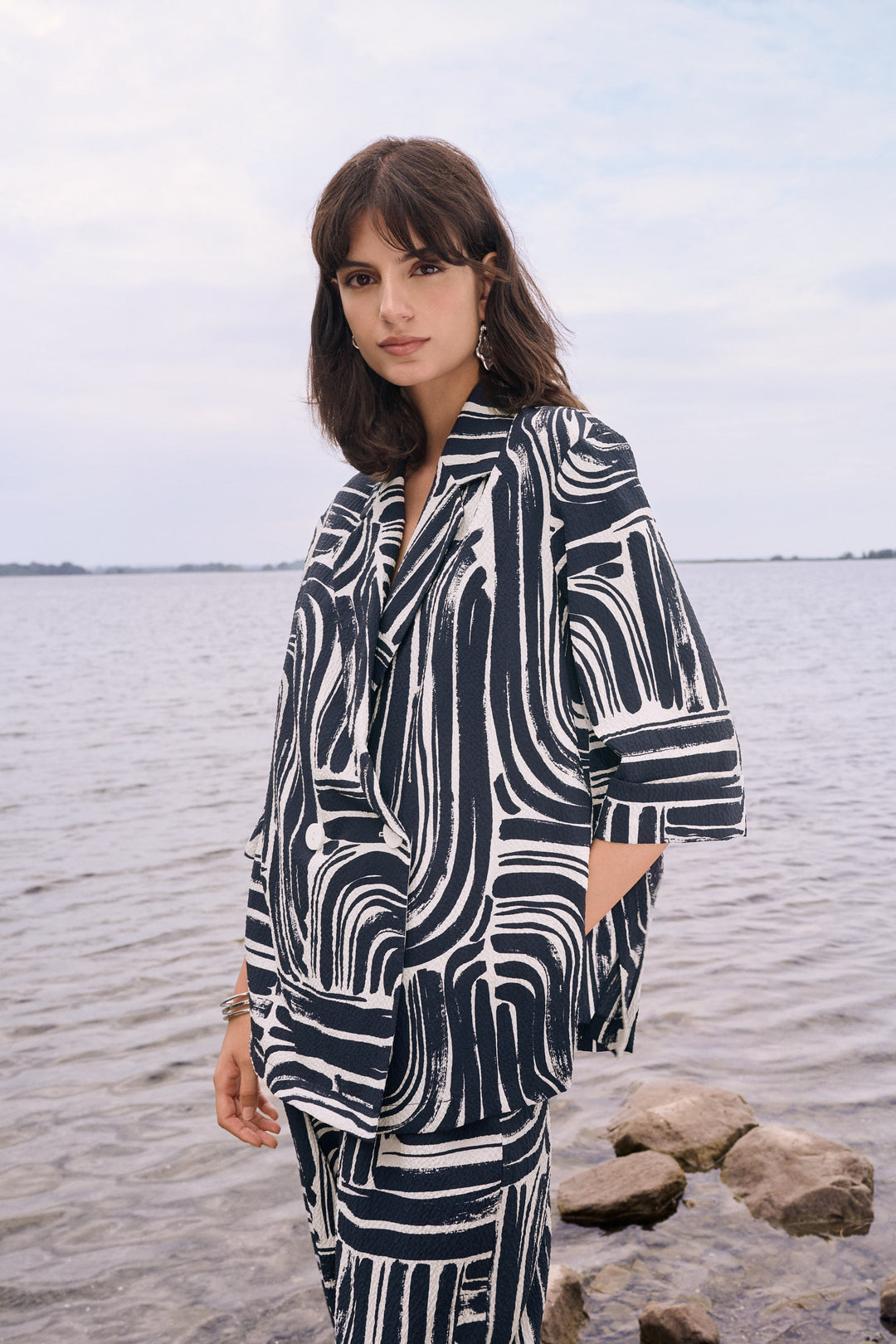 Seersucker Abstract Print Double-Breasted Blazer 262166