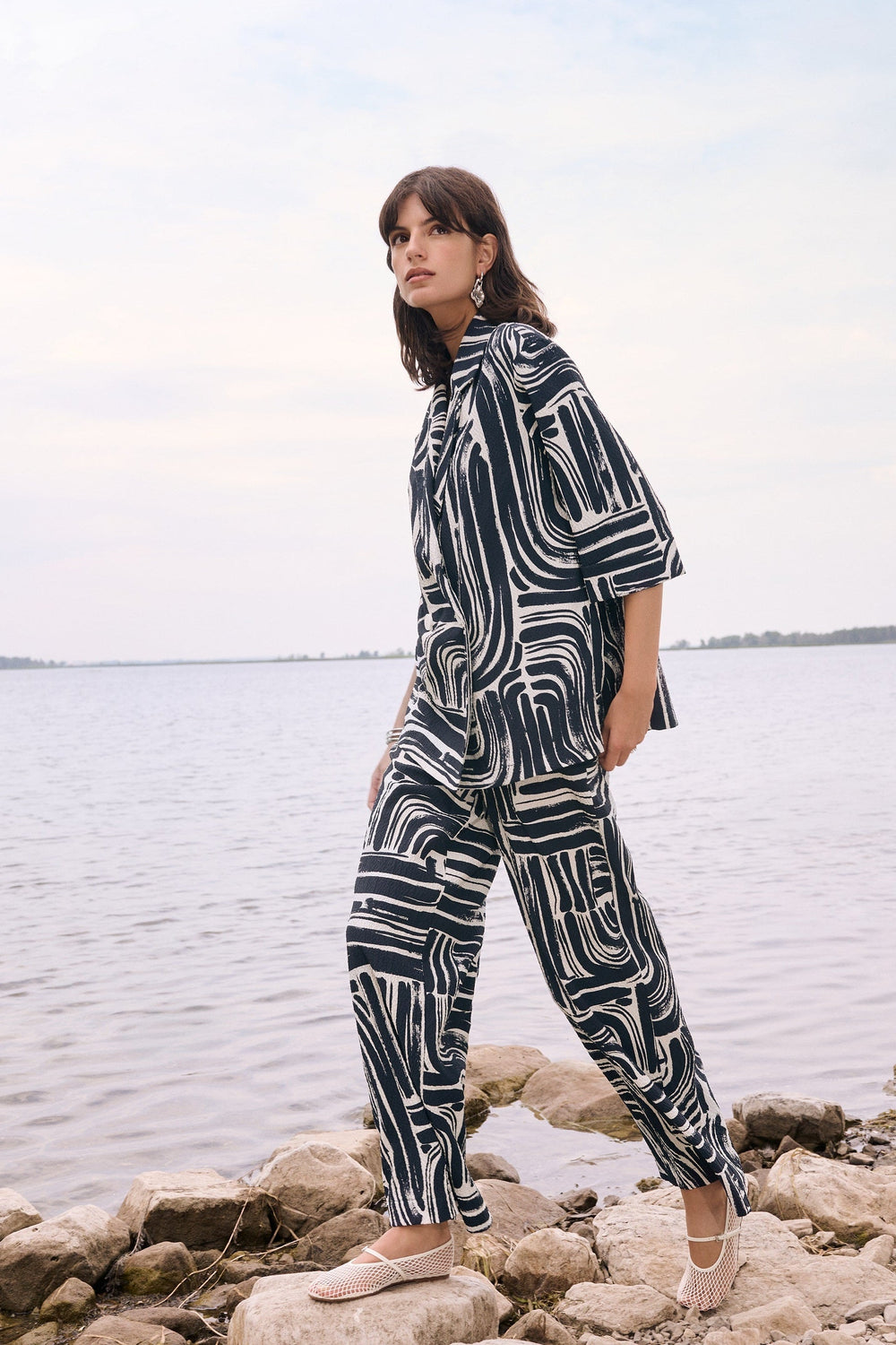 Bubble Satin Abstract Print Wide Leg Pants With Side Slits 262257
