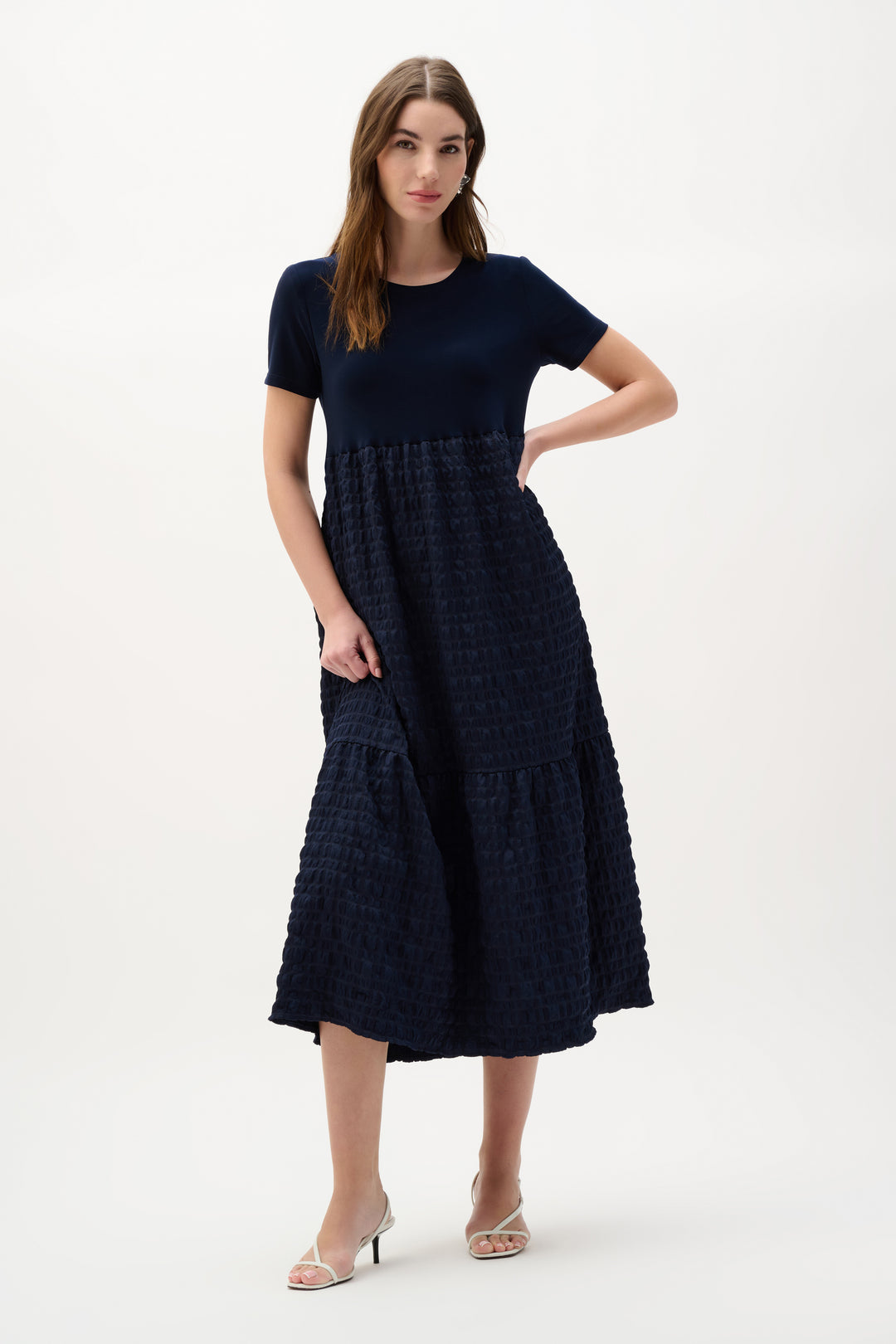 Bubble Jacquard Trapeze Dress With Scoop Neckline 262173
