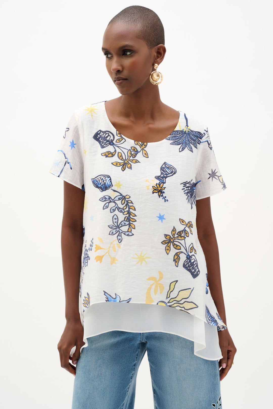 Sheer Woven Tropical Print Trapeze Tunic 262204