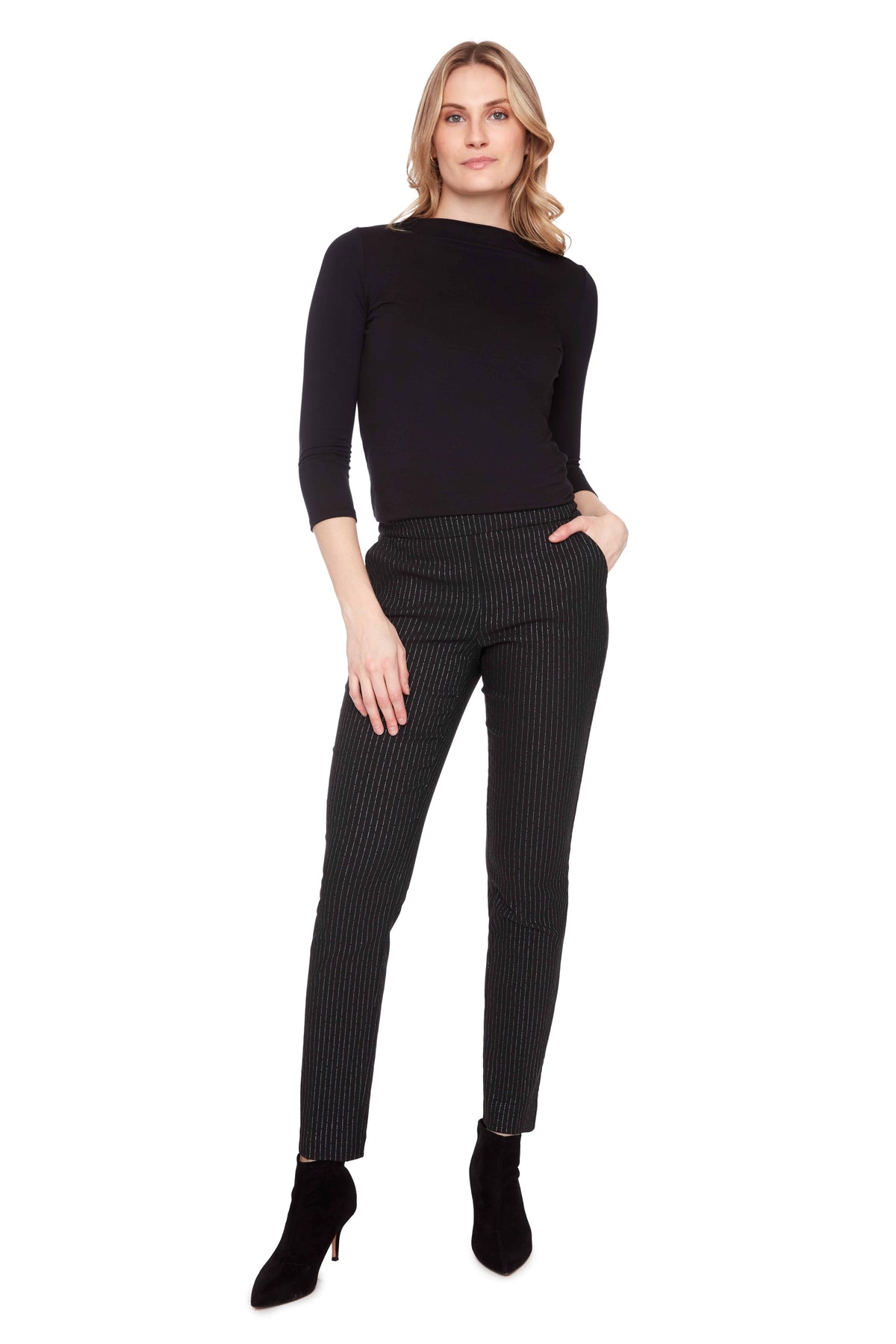 An unforgettable addition to your fall arsenal, this party-ready piece injects instant glam to any ensemble. The metallic tuxedo-inspired print exudes a swanky elegance, featuring a chic full-length and slim silhouette that elevate the entire look to must-have status. Pair with heels and a slinky white top for a sophisticated soiree.