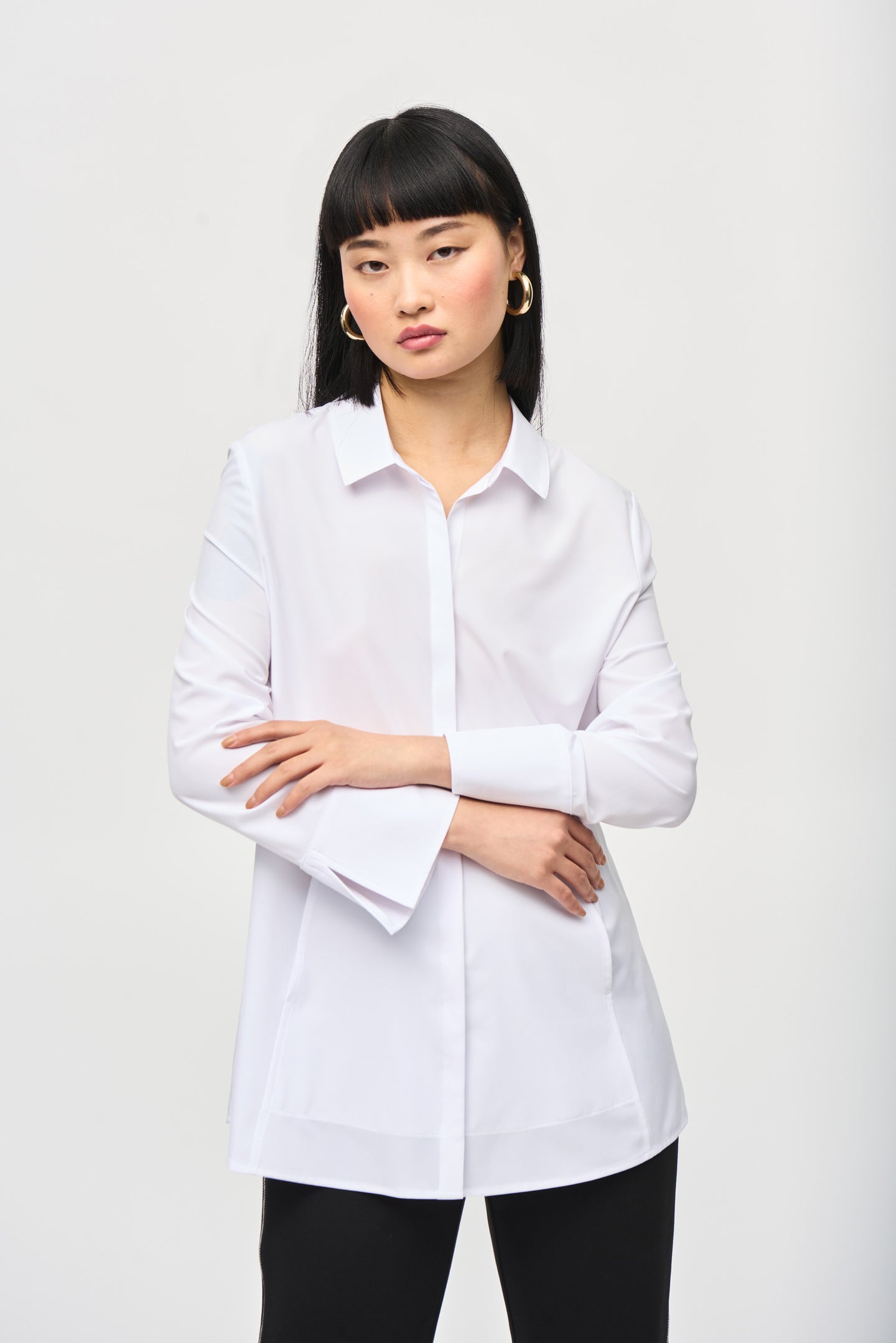 Embrace effortless style and feel confident all day long with the Joseph Ribkoff Woven Button-Down Blouse. Order yours today!