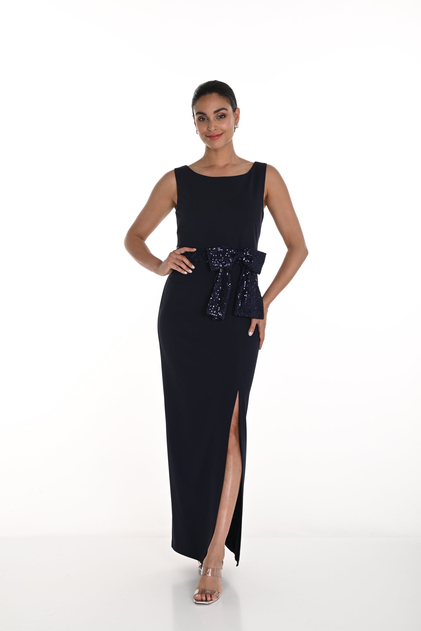- Stylish Sequined Bow: The eye-catching sequined bow belt adds a touch of glamour and defines your waist, making it a standout feature of this elegant gown.