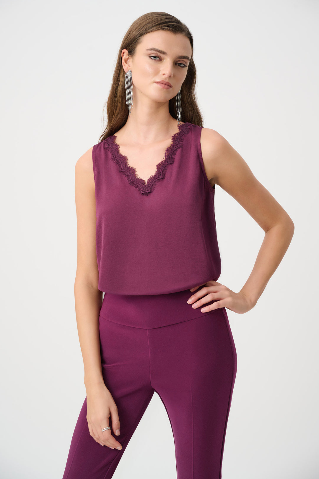 Recycled Satin Sleeveless V-Neck Top Style 263235