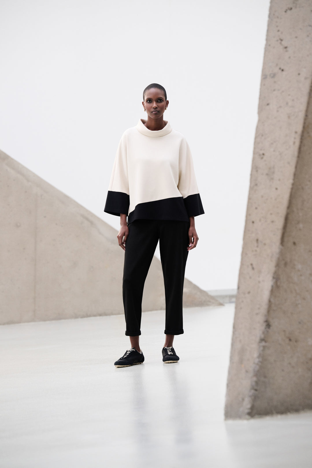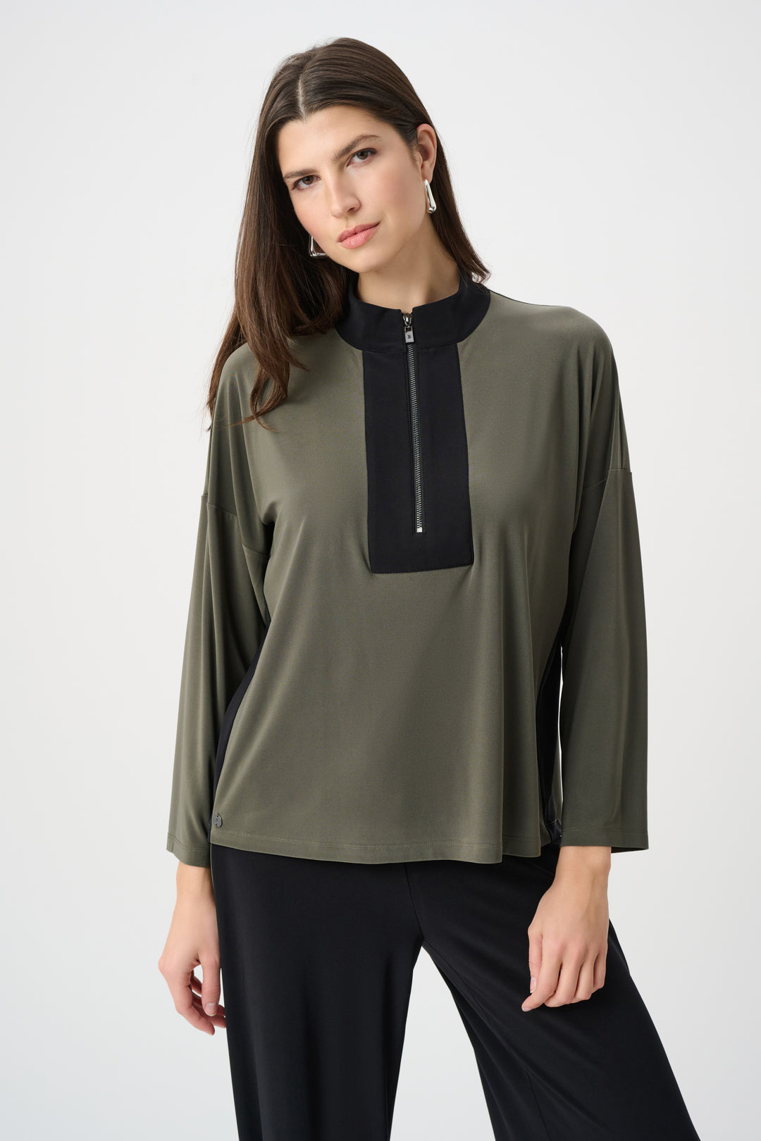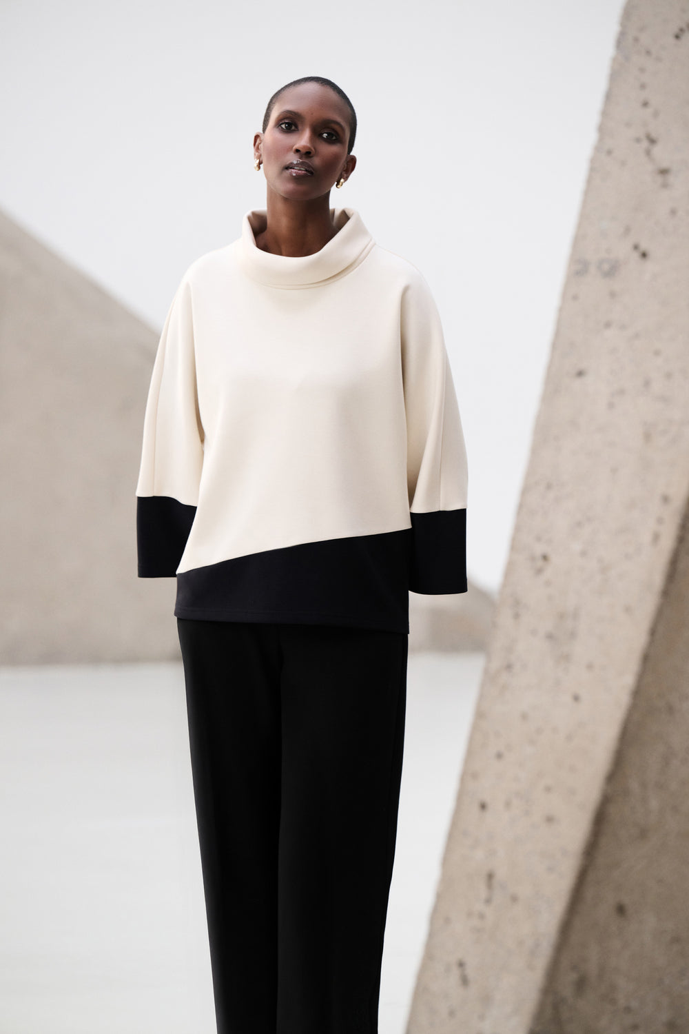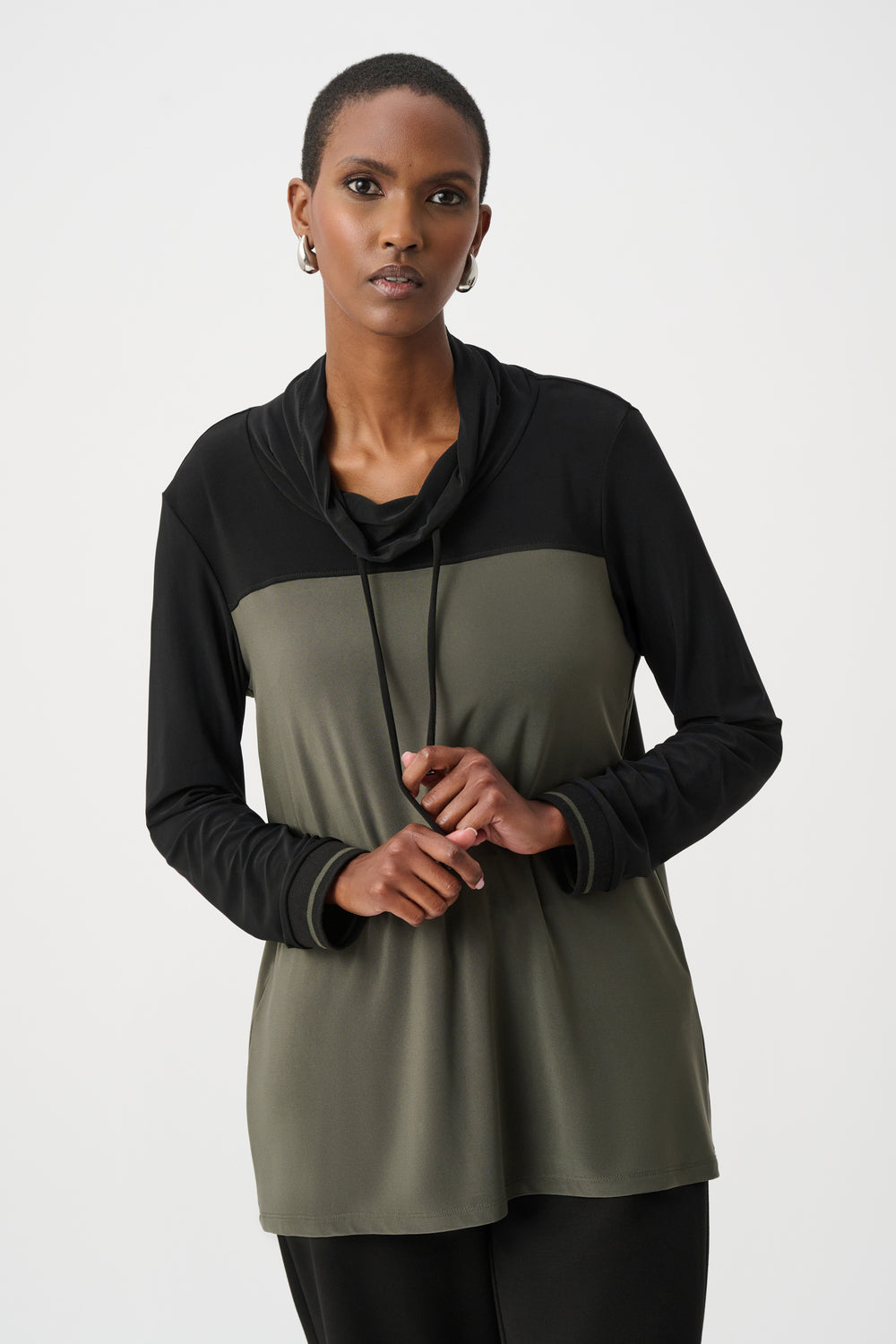 Silky Knit Color Block Funnel-Neck Tunic Style 263618