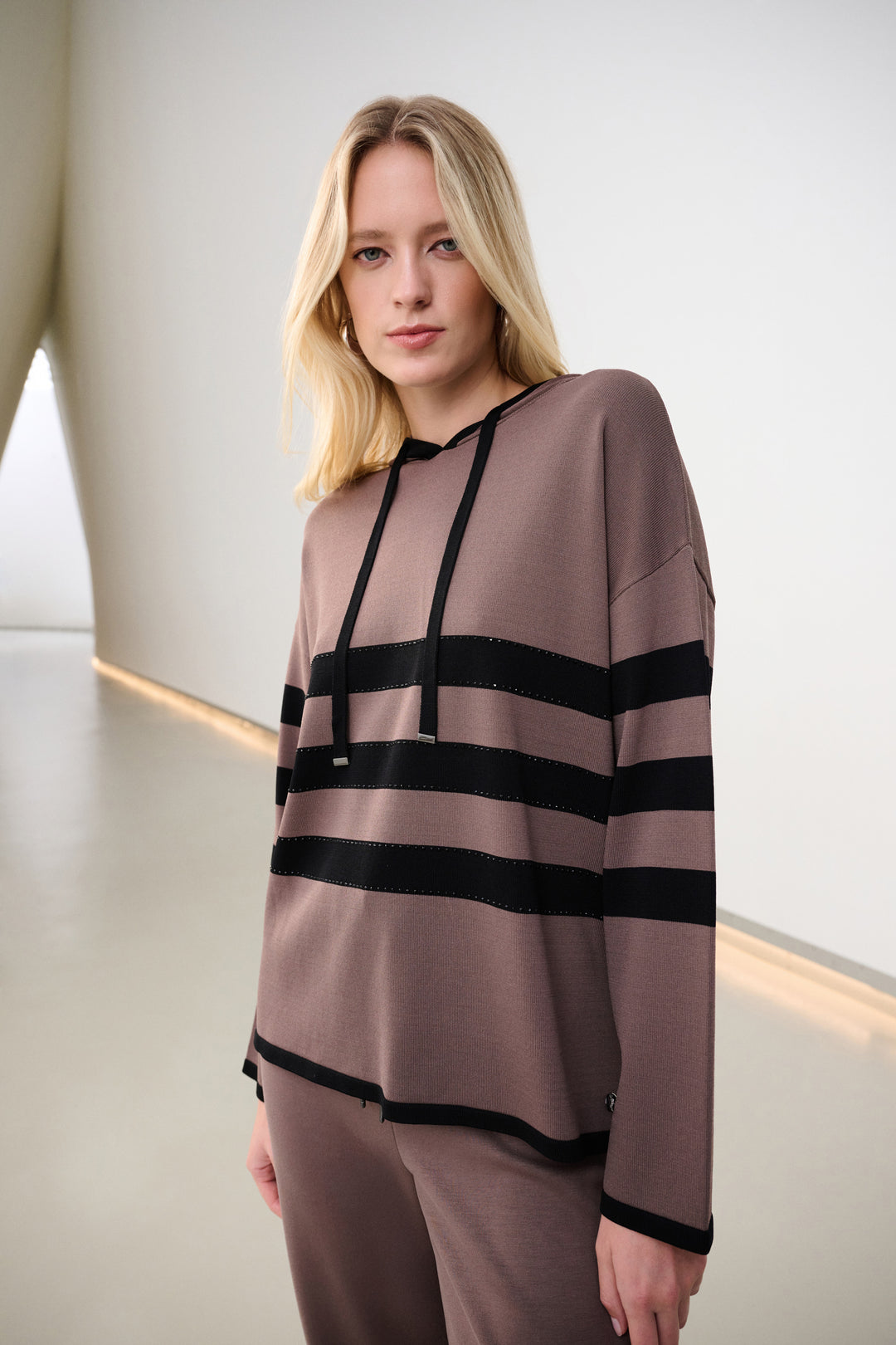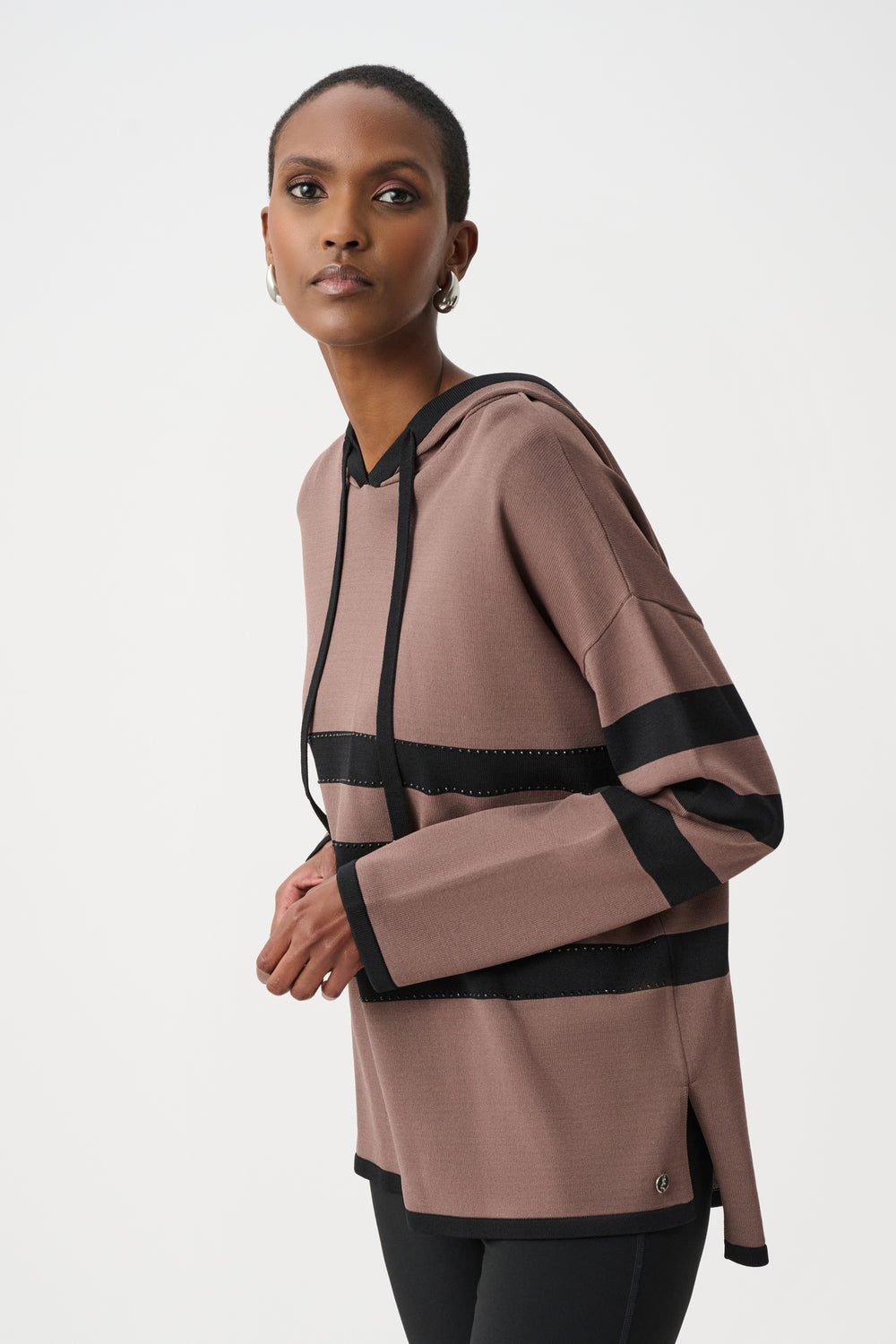 Sweater Knit Striped Hooded Sweater 263626
