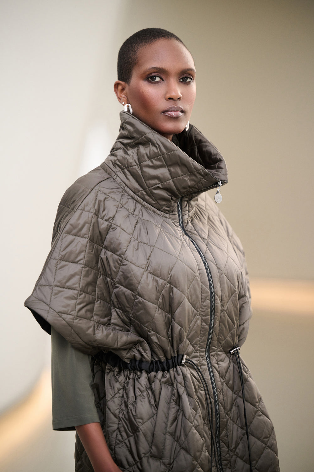 Quilted Nylon Shawl-Neck Boxy Vest Style 263643