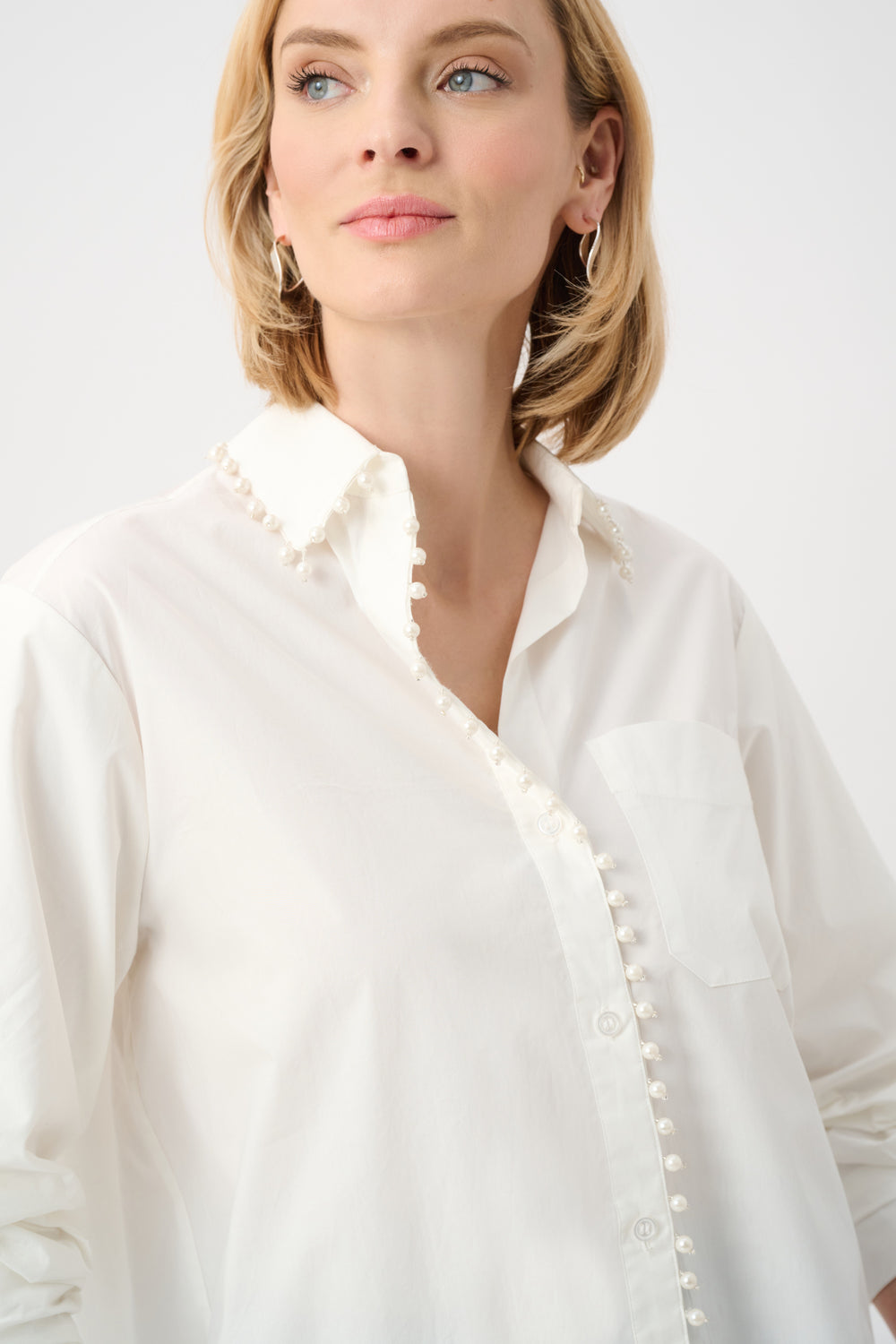 Cotton Poplin Pearl Trim Boxy Blouse 263923