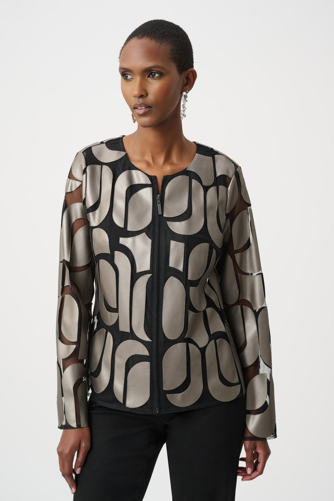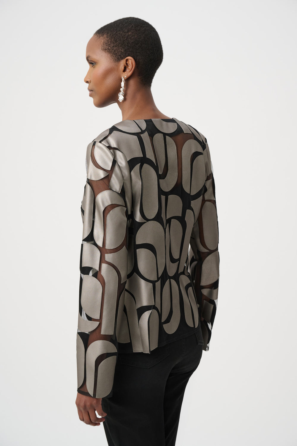 Foil-Textured Jacquard Trapeze Jacket Style 263725