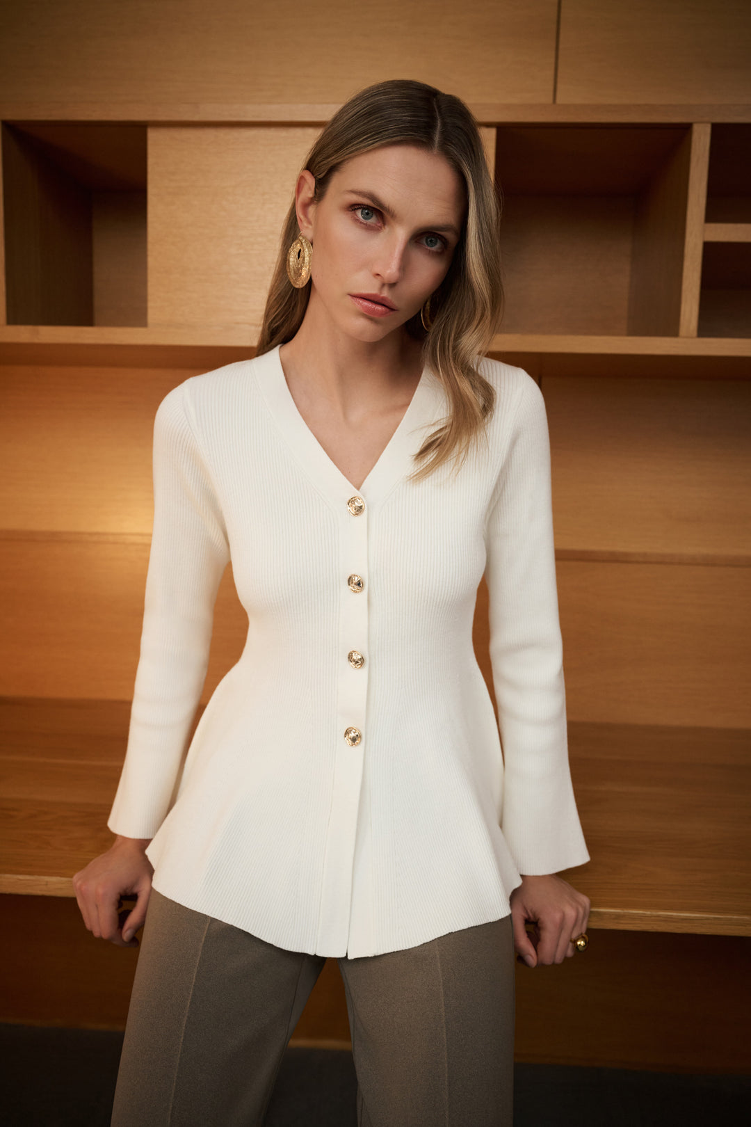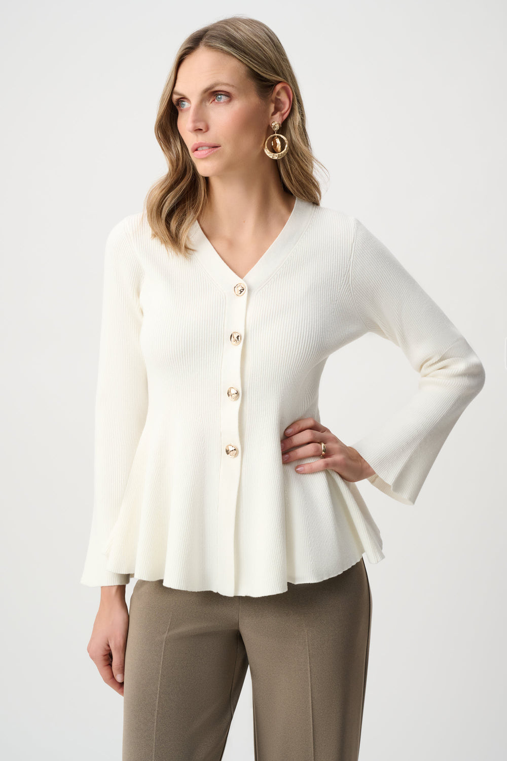Cotton Knit Fit And Flare Peplum Cardigan Style 263968