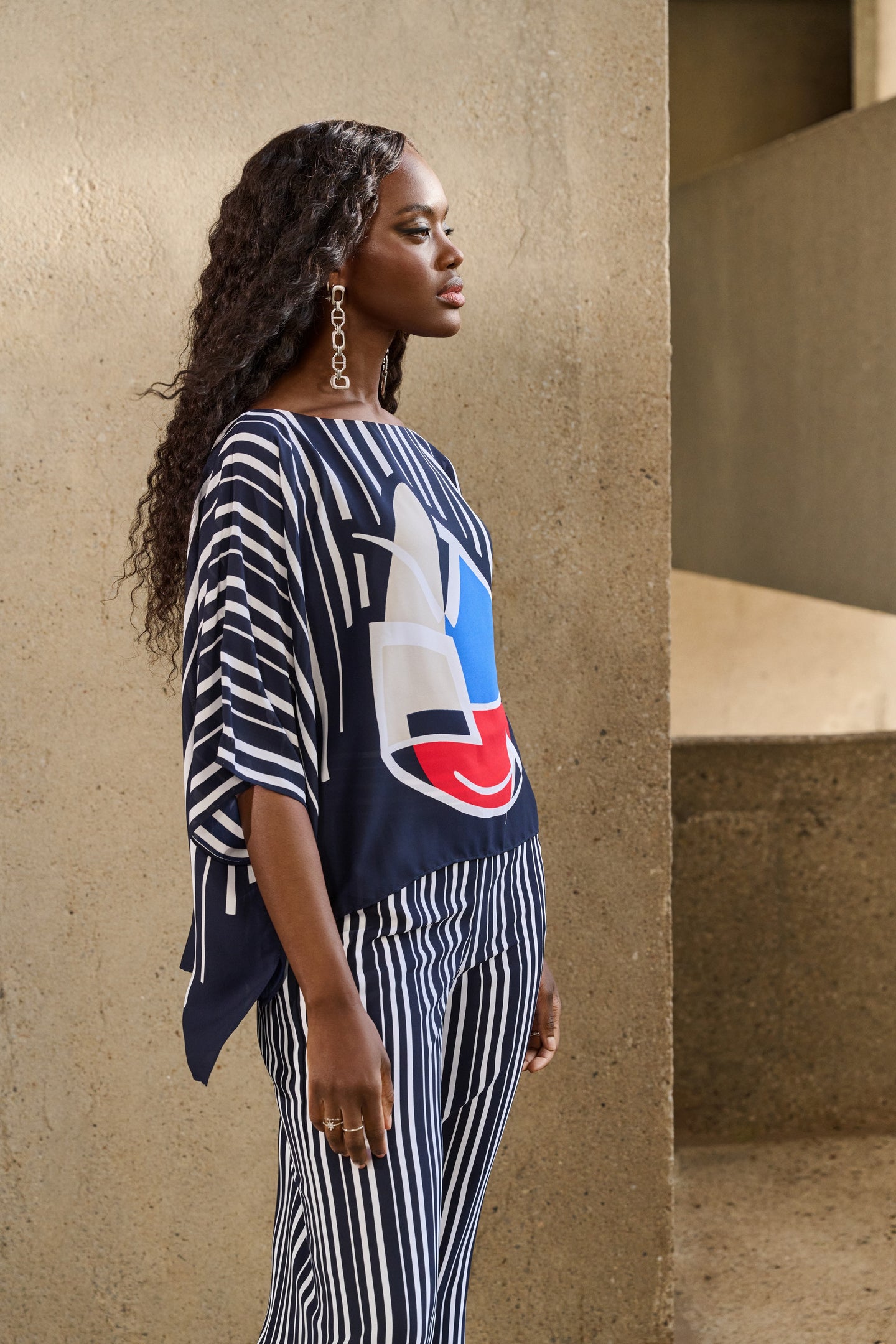 • Striking Geometric Print: A captivating abstract design with vibrant colors that brings a modern twist to classic stripes.